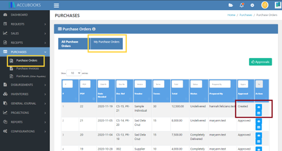 Click the “Eye Button” to view the transaction that was created automatically in Purchase Order from the Canvass Summary.