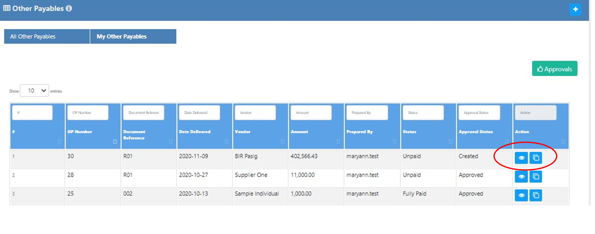 To view attachment/check/return, just click the appropriate button at the lower leftmost portion of the Other Payables Module. You can download the attachment by clicking the link.
