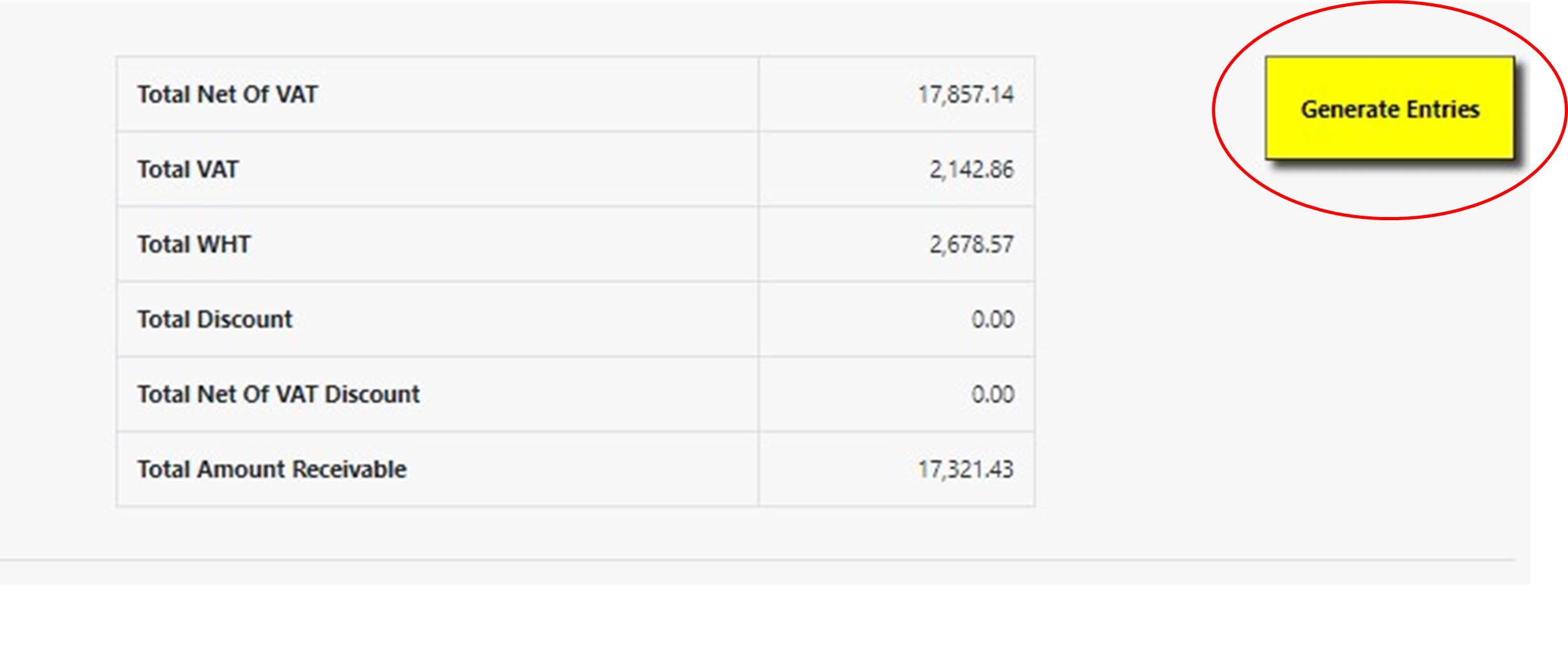 - WHT % - Dropdown list of all Withholding Taxes